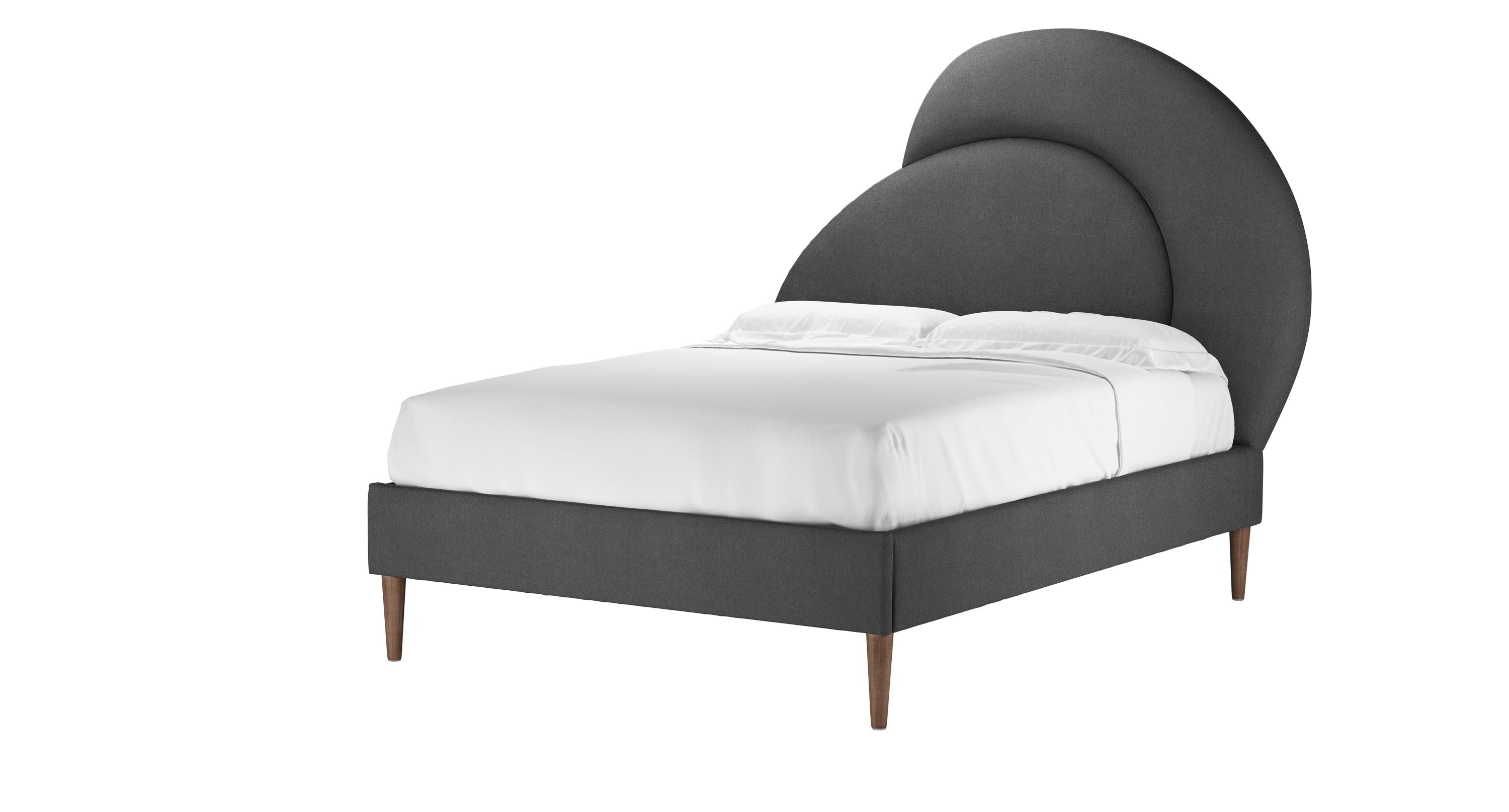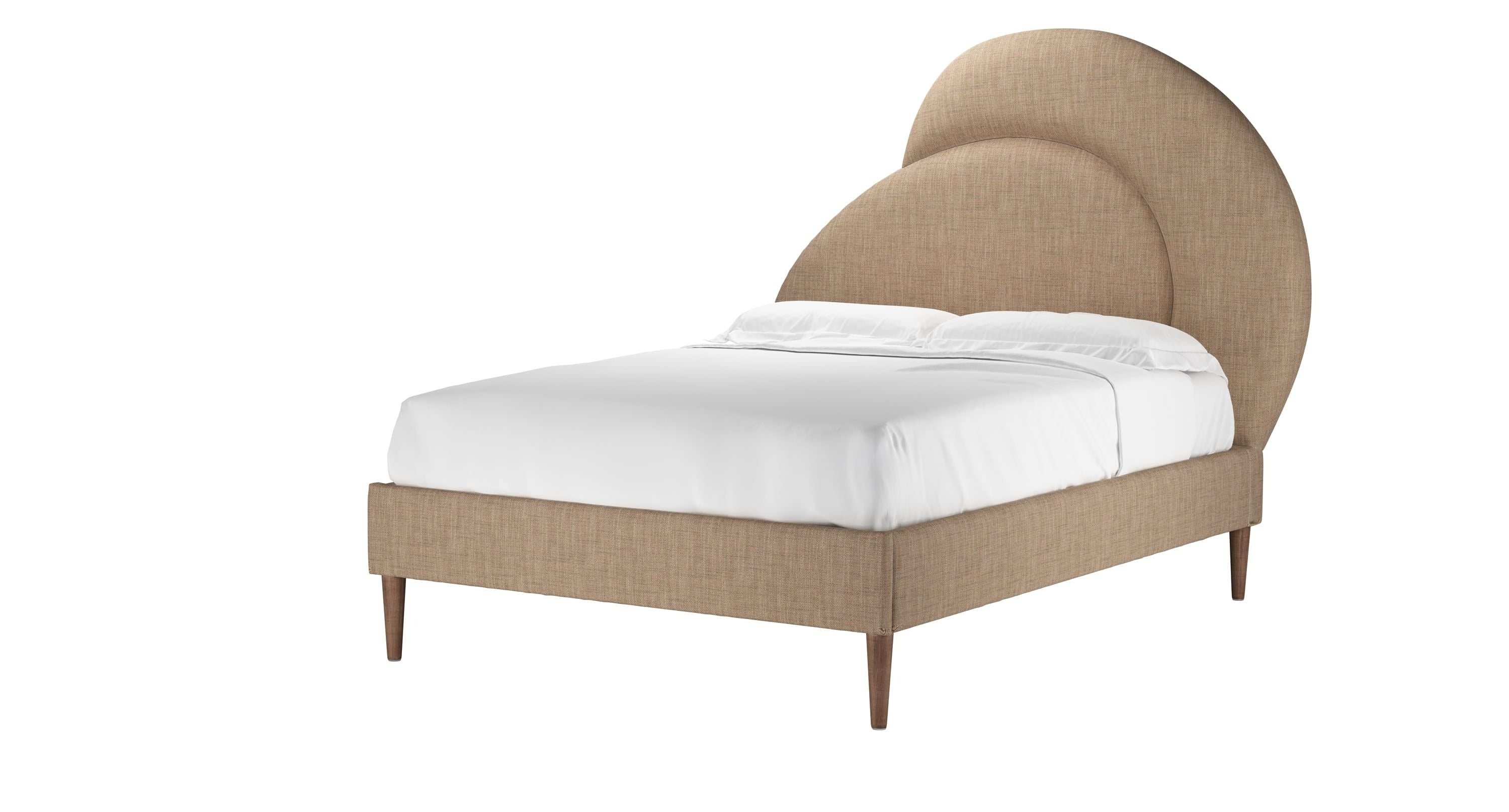 A truly unique design, it’s the perfect statement piece for your bedroom. Inspired by organic shapes often seen in nature to create a sensorial shape that brings zen. Featuring sleek tapered legs and asymmetric curves that provide a contemporary feel that are equally timeless. Also available as just a headboard and as an ottoman for extra storage.