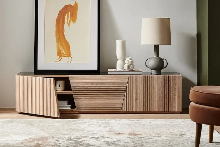 Declutter your living room with sleek storage.